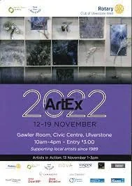 ArtEx, the annual art exhibition run by the Rotary Club of Ulverstone West and the North West Art Circle, is open to the public from Saturday November 12th to Saturday November 19th. The exhibition is held in the Gawler Room at the Ulverstone Civic Centre. Opening times are from 10:00am to 4:00pm every day except the 19th which will close at 3:00pm. Entry Fee $3.00 For phone enquires contact Sandy Michell on 0407 825 430 or Phil McKenzie on 0488 050 853