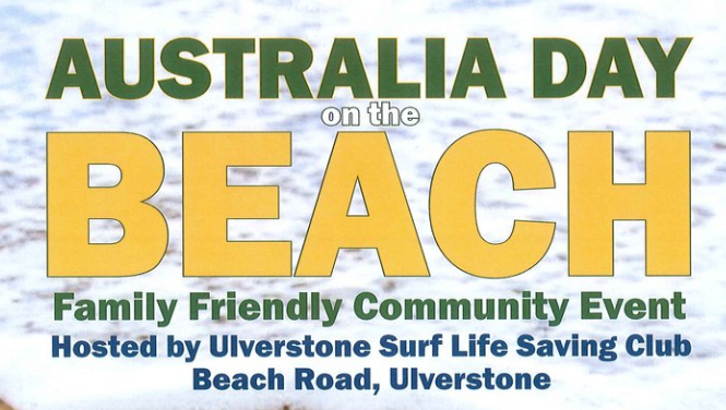 Australia Day on the Beach is a Family Friendly Community Event hosted by the Ulverstone Surf Life Saving Club, 7 Beach Road, Ulverstone from 12.00pm to 3.00pm. Free entry, free beach activities. BBQ and canteen from 12 noon, counter meals from 6pm and bar open from 12 noon.