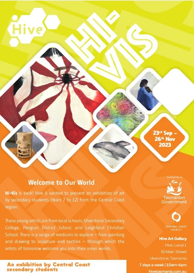 Hi-Vis: An exhibition by Central Coast secondary students will be showing in the Hive Art Gallery until Sunday the 26th of November, 2023.