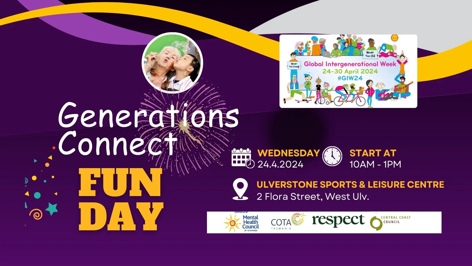 This event, with thanks to funding from the Mental Health Council of Tasmania is organised in collaboration with Respect Aged Care and COTA (Council On The Ageing) Tasmania, coincides with Global Intergenerational Week
