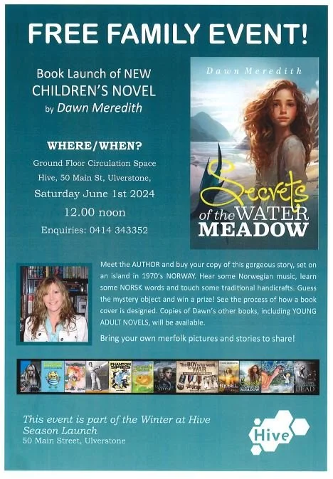 Book Launch - Secrets of the Water Meadow by Dawn Meredith Saturday, June 1, 2024 12:00 PM 1:00 PM 12:00 13:00 Hive Tasmania 30 Main Street Ulverstone, TAS, 7315 Australia (map) Google Calendar ICS The event is part of the Winter @ Hive Season LaunchThe book Launch is a Family Free Event