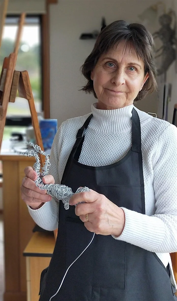 Born and raised in Ulverstone, Louise Daniels is a Palawa Trawlwoolway woman who grew up in a large, creative family where someone was always making something. She has a lifelong interest in the visual arts, and has enjoyed the opportunity to focus on art studies and practice over the past eighteen years. Daniels is a multi-media artist whose practice includes landscape paintings, charcoal and mixed media drawings, and figurative wire sculpture.