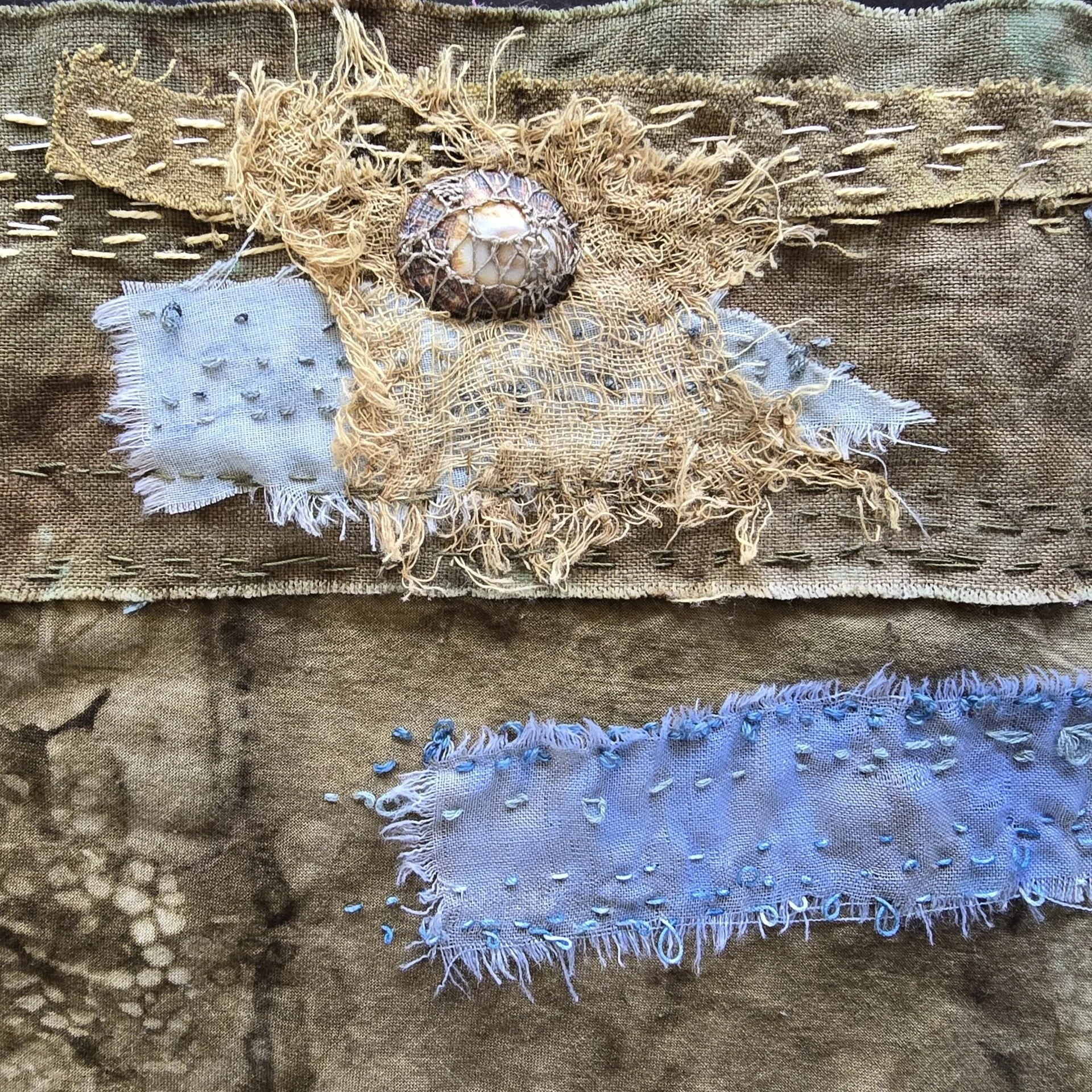 During this workshop participants will explore different stitching techniques, layering different weights of fabric, line work and playing with the tension of stitches, which can create different textures. All this stems from the humble straight stitch and we will see where we can take it. Participants play with applying found objects from the beach, such as shells, bottle tops and tiny pieces of driftwood and more. The theme of this workshop comes from the exhibition: Ocean - The Cradle of Life, currently on view in the gallery at Hive.