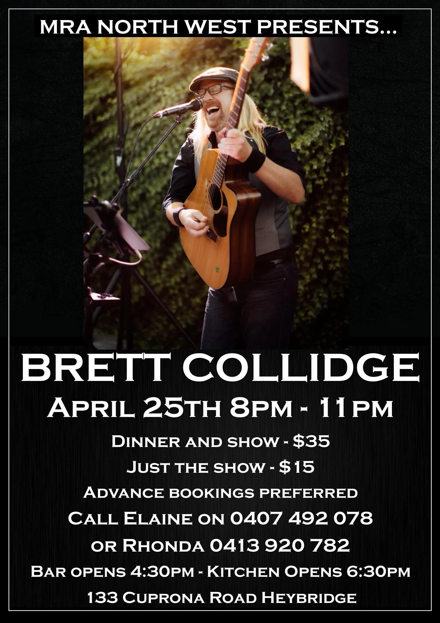Get your bookings in people for a great night with the talented Brett Collidge on the 25th April